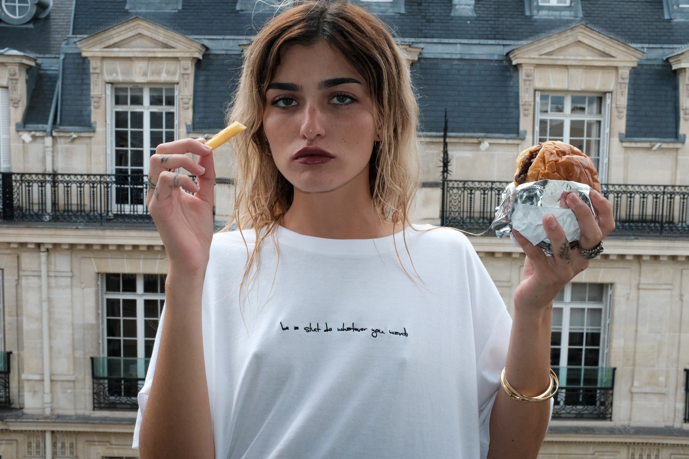This sleek smart-cut model comes in two options: classic white tee with a bold black quote or a sophisticated black t...